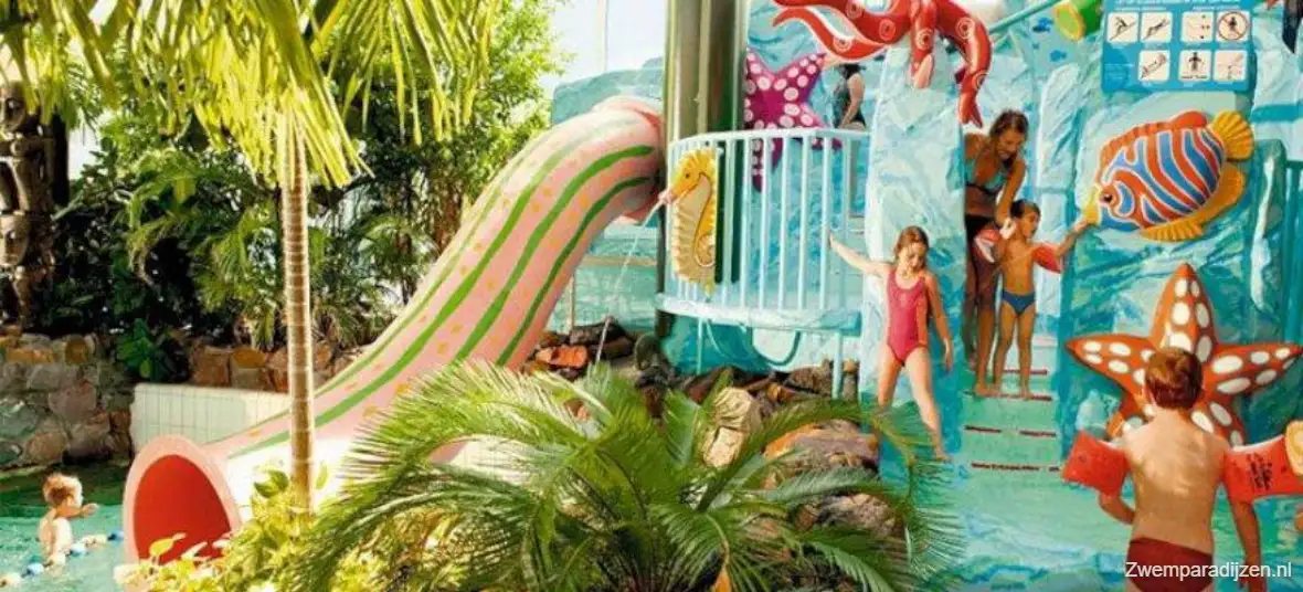 Subtropisch zwembad Aqua Mundo Limburgse Peel in America - Limburg. 🏊 Heerlijk zwemmen in subtropische temperaturen onder de palmbomen? 🌴 Ga een dagje zwemmen in het Center Parcs Aqua Mundo Limburgse Peel subtropisch zwemparadijs! 💦 Lekker een dagje weg met de kinderen, met veel water-spetter-plezier, lekkere snacks en ontspanning voor de ouders. Het zwembad is schoon, veilig en altijd lekker warm.